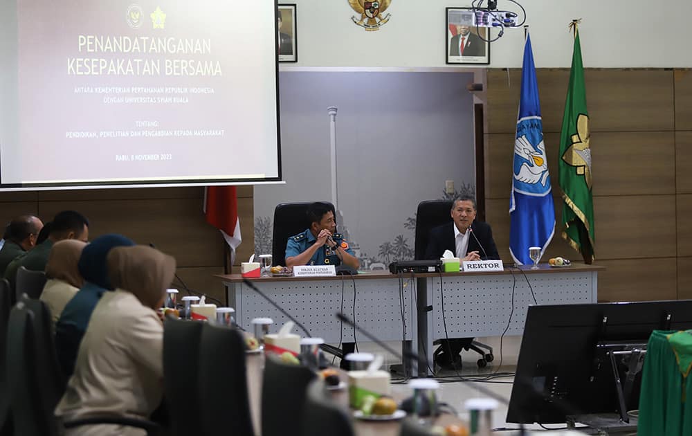 Kementerian Pertahanan (Kemhan) Republik Indonesia bersama Universitas Syiah Kuala (USK) menandatangani kesepakatan bersama, terkait pendidikan, penelitian dan pengabdian masyarakat, yang berlangsung di Balai Senat kampus ini, Rabu, 9 November 2023.