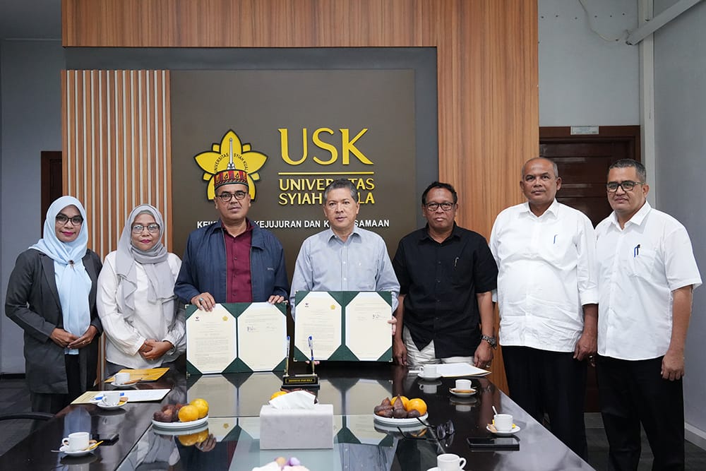 Universitas Syiah Kuala dan Komisi Kebenaran dan Rekonsiliasi (KKR) Aceh sepakat menjalin kerja sama demi merawat perdamaian Aceh. Kesepakatan ini ditandai dengan penandatanganan MoU antara Ketua KKR Aceh Masthur Yahya, S.H., M.Hum dengan Rektor USK Prof. Dr. Ir. Marwan di Ruang Mini Rektor USK. (Banda Aceh, 10 Februari 2025).