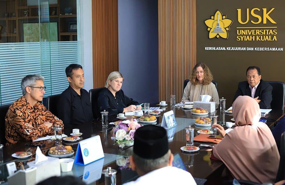 Universitas Syiah Kuala (USK) menerima kunjungan delegasi Kedutaan Besar (Kedubes) Selandia Baru untuk Indonesia yang dipimpin oleh Deputy Head of Mission, Dr. Giselle Larcombe, Kehadiran delegasi disambut langsung oleh Wakil Rektor Bidang Akademik USK, Prof. Dr. Ir. Agussabti, M.Sc di Ruang Mini Rektor USK. Banda Aceh, (23 September 2025). Kunjungan ini menjadi momen penting karena bertepatan…
